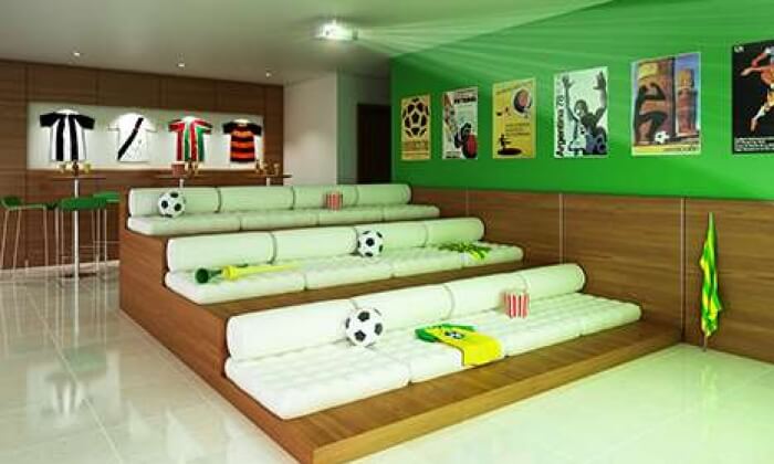 Espelho D´água, Deck Ilha, Piscina Infantil, Solário, Bar da Piscina, Playground, Quadra Infantil, Churrasqueira, Salão de jogos, Espaço Stadium, Espaço Relax, Sauna, Fitness, Salão de festas infantil, Salão de festas adulto, Espaço Gourmet, Lounge Externo, Brinquedoteca, área Verde