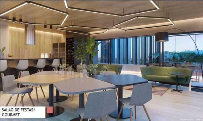 6 pavimentos Tipo e Rooftop e 9 pavimentos Tipo e Cobertura. Embasamento: Térreo com acesso, lojas e garagem. Jirau com departamento das lojas e garagem. PUC Bloco 1, Garagem e Gardens bloco 2.