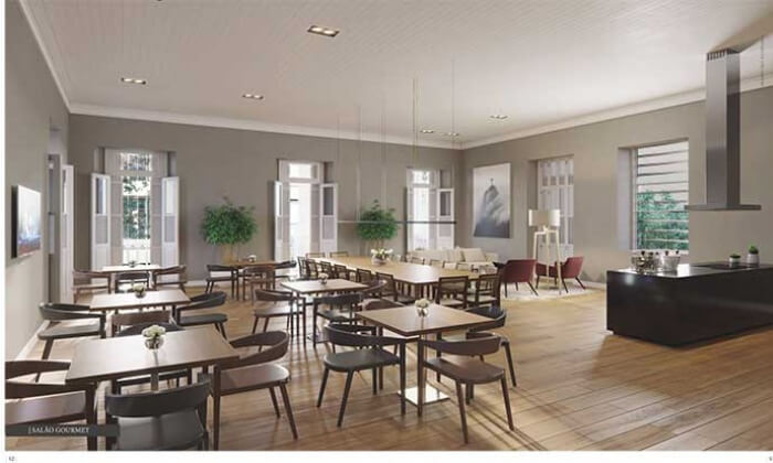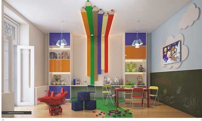 Piscina infantil, piscina adulto, fitness, brinquedoteca, playground, repouso, sala de massagem e sauna. Salão Gourmet.