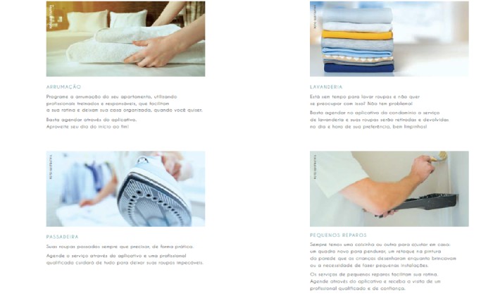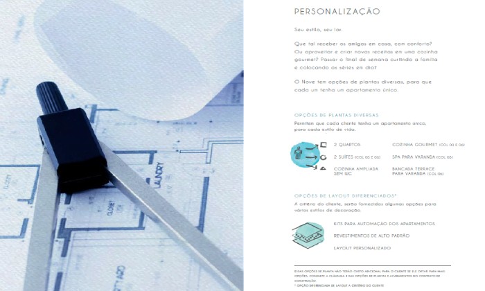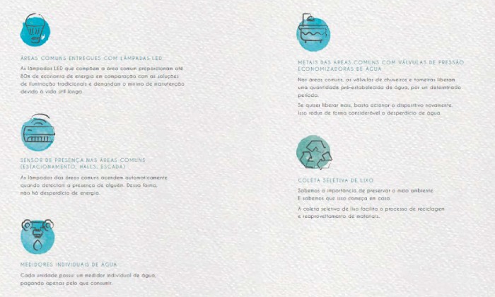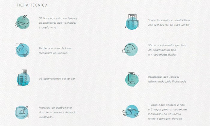 • 1 vaga para gardens e tipo e 2 vagas para as coberturas, localizadas no pavimento térreo e garagem elevada