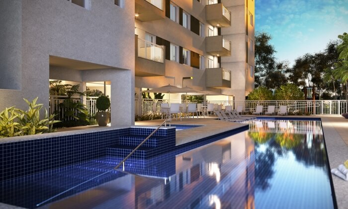 Um projeto elegante e sofisticado, com duas torres de arquitetura imponente, acesso com pé direito duplo e revestimentos diferenciados, como o porcelanato ecowood e cobogó, desenhado pelo arquiteto Arthur Casas.
