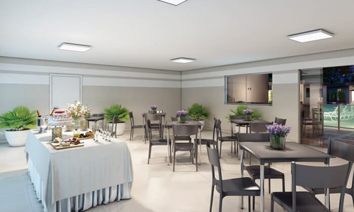 Iluminação LED nas áreas comuns, quando aplicável, e sensores de presença nas garagens.