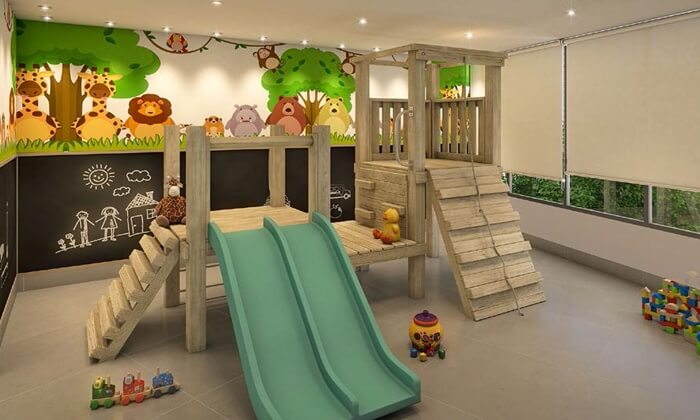 • Sistema de ar-condicionado do tipo split: Salão de Festas, Espaço Multiuso e demais ambientes decorados (Brinquedoteca, Academia e Salão de jogos).